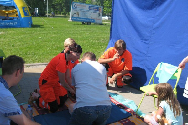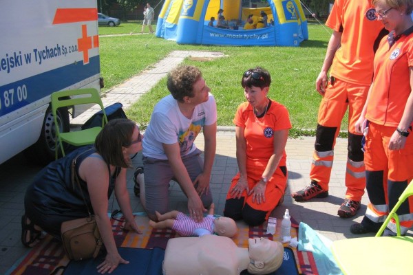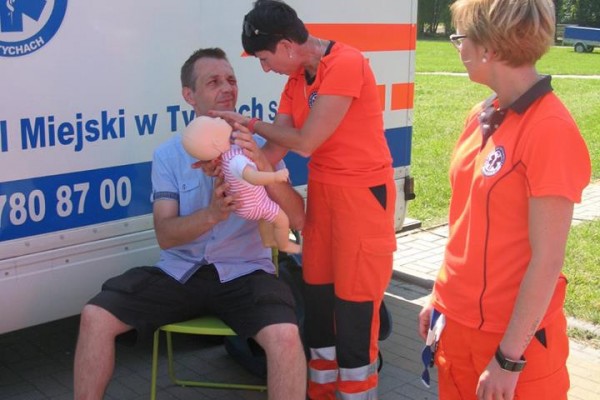 Ratownicy prowadzili warsztaty pierwszej pomocy, na scenie zaprezentowali sposób postępowania z dzieckiem w przypadku zadławienia. Chętnych do ćwiczeń z fantomami medycznymi nie brakowało.