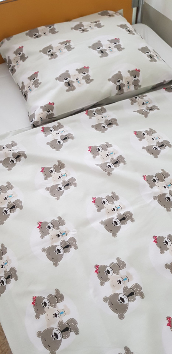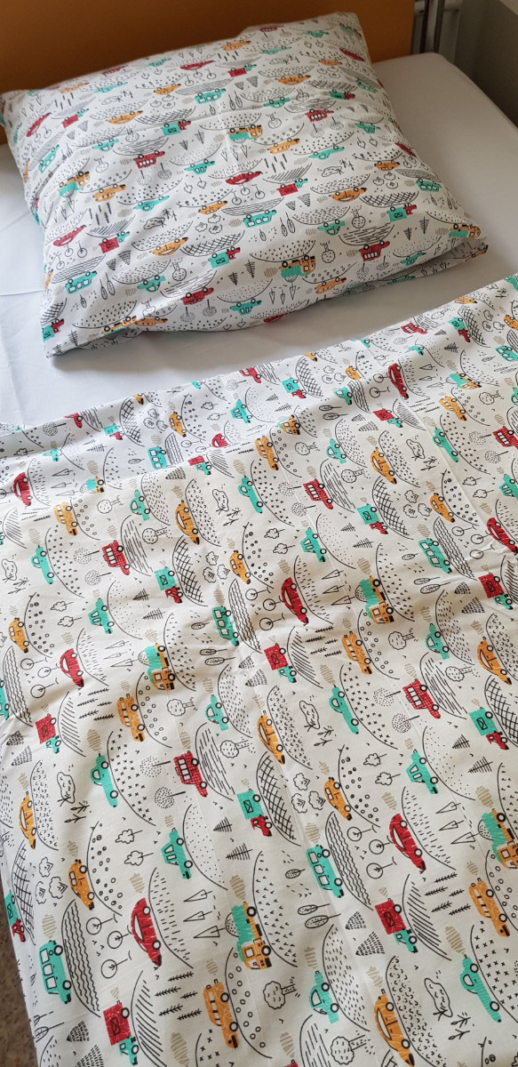 Pościel została samodzielnie uszyta przez wolontariuszki z DPD. Panie, po przyspieszonym kursie kroju i szycia, wykonały 20 kompletów pościeli dziecięcej.